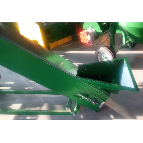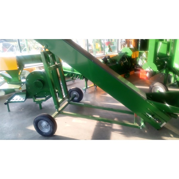 E' adatto per il carico di prodotto come nocciole, castagne, noci, cereali, legumi e qualsiasi prodotto in genere. Modello con nastro di carico di 3 mt e altezza di scarico a 2,20 mt
